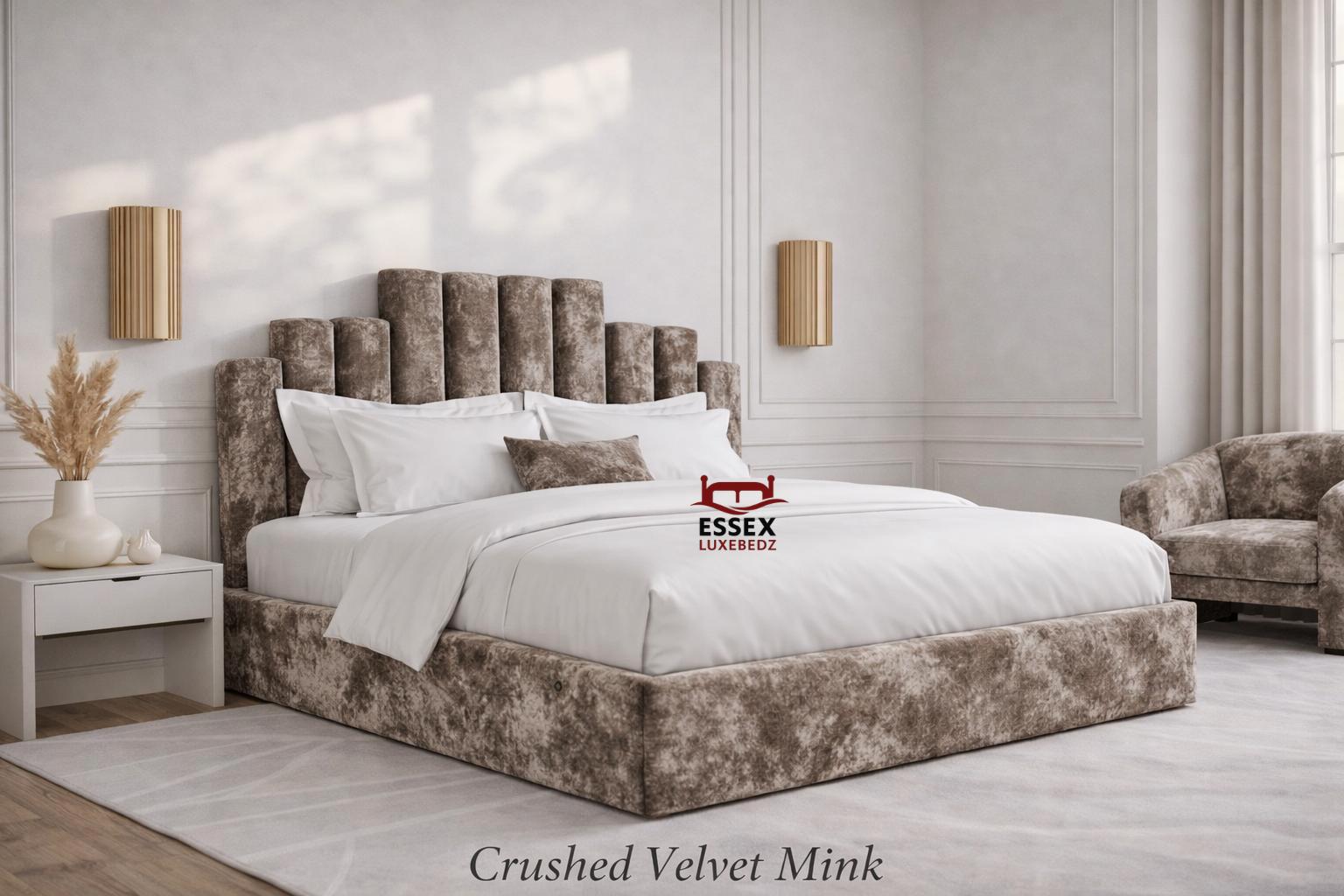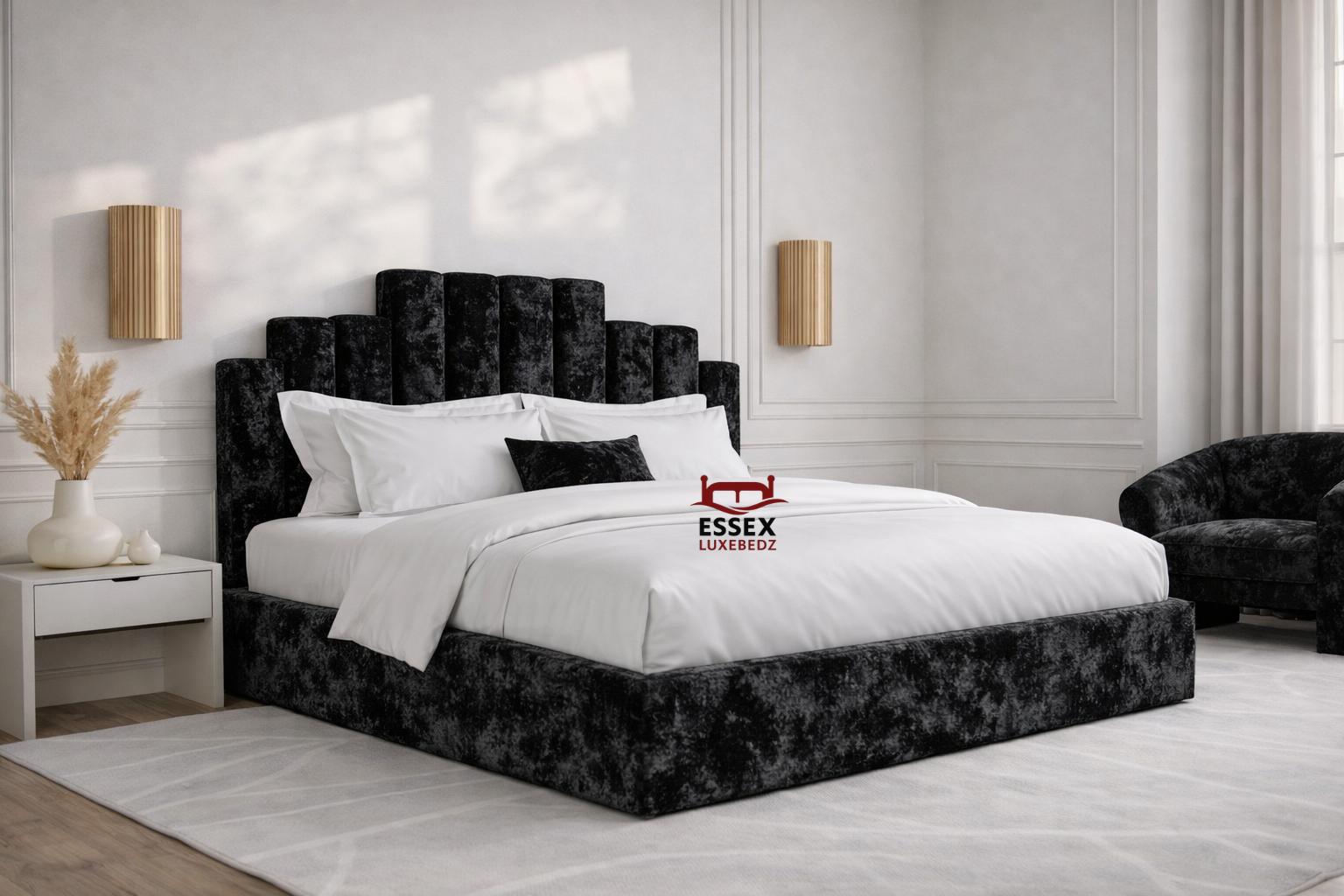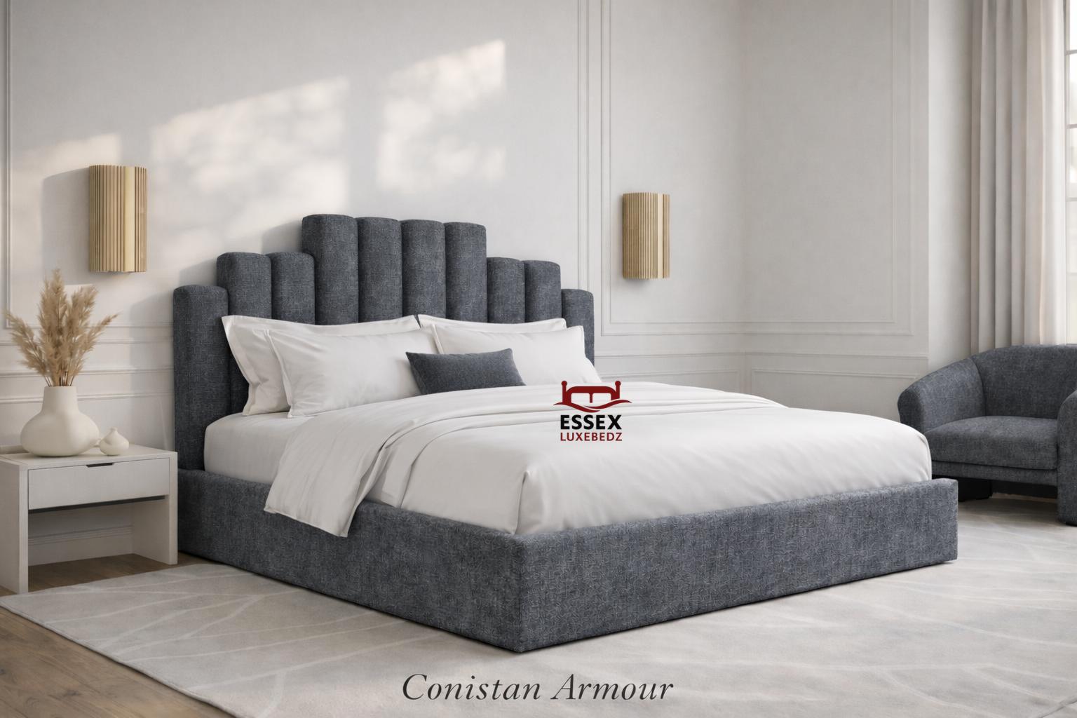 by Essex Luxe Bedz Ltd is a timeless statement piece, featuring a bold, vertically panelled headboard that adds both character and sophistication to your bedroom. Crafted with premium upholstery and built on a sturdy frame, this bed effortlessly blends comfort and style.Choose from a wide selection of colours and luxurious fabrics including velvet, chenille, and teddy to match your interior perfectly. Whether you prefer a neutral tone or a bold accent, this bed can be tailored exactly to your taste.