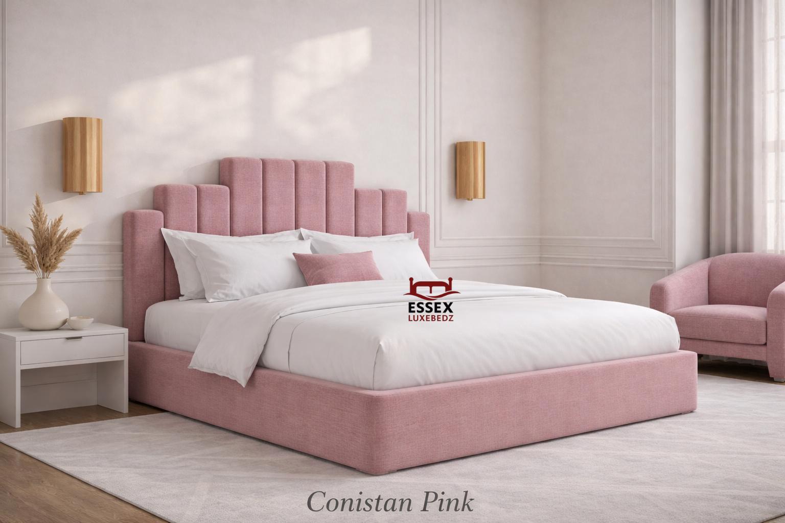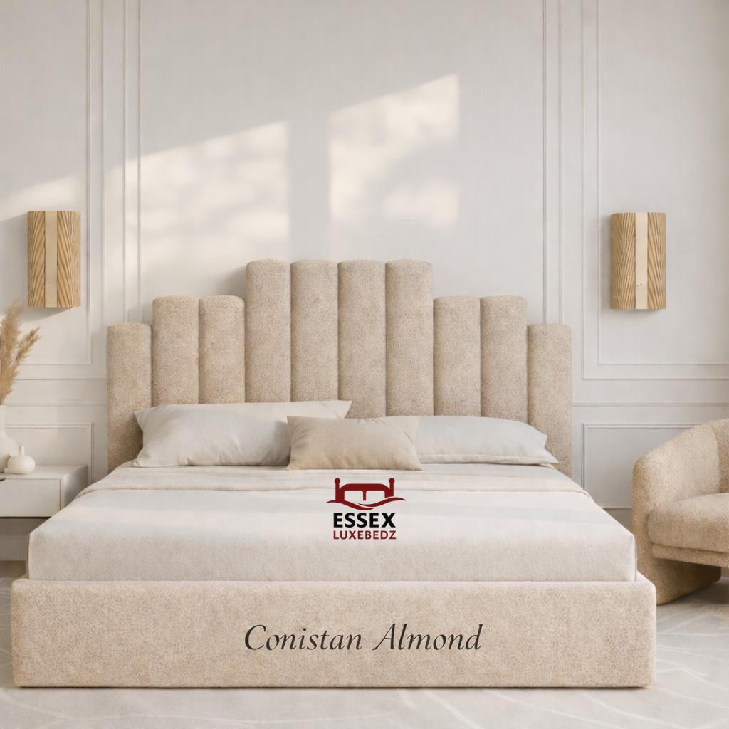 By Essex Luxe Bedz Ltd is a timeless statement piece, featuring a bold, vertically panelled headboard that adds both character and sophistication to your bedroom. Crafted with premium upholstery and built on a sturdy frame, this bed effortlessly blends comfort and style.Choose from a wide selection of colours and luxurious fabrics including velvet, chenille, and teddy to match your interior perfectly. Whether you prefer a neutral tone or a bold accent, this bed can be tailored exactly to your taste.