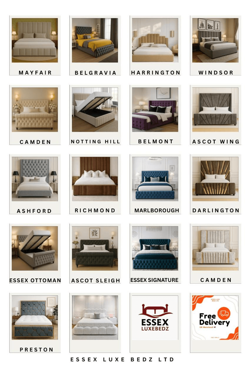 by Essex Luxe Bedz Ltd is a refined blend of modern elegance and bold design. Featuring a vertically panelled headboard with subtle winged sides, this bed brings a clean, structured look to any bedroom. The matching footboard adds balance and a touch of grandeur, while the plush upholstery ensures comfort without compromising on style.